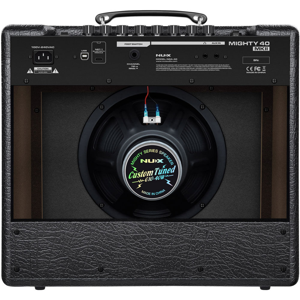 The NU-X Mighty 40 BT is a 40 watt powered amplifier with 4 channels, digital effects, 3-band EQ and tuner. And you can connect any device by Bluetooth for playing along with your favourite music or backing track. Mighty 40 BT is a 10-inch dynamic speaker equipped modeling amplifier, it's powerful. You can customize and save your own presets and bring your sound to any stage.